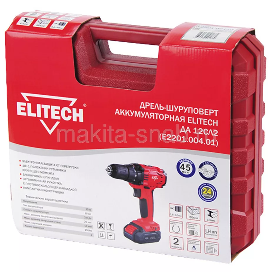 Аккумуляторная дрель-шуруповерт Elitech ДА 12СЛ2 (Е2201.004.01)