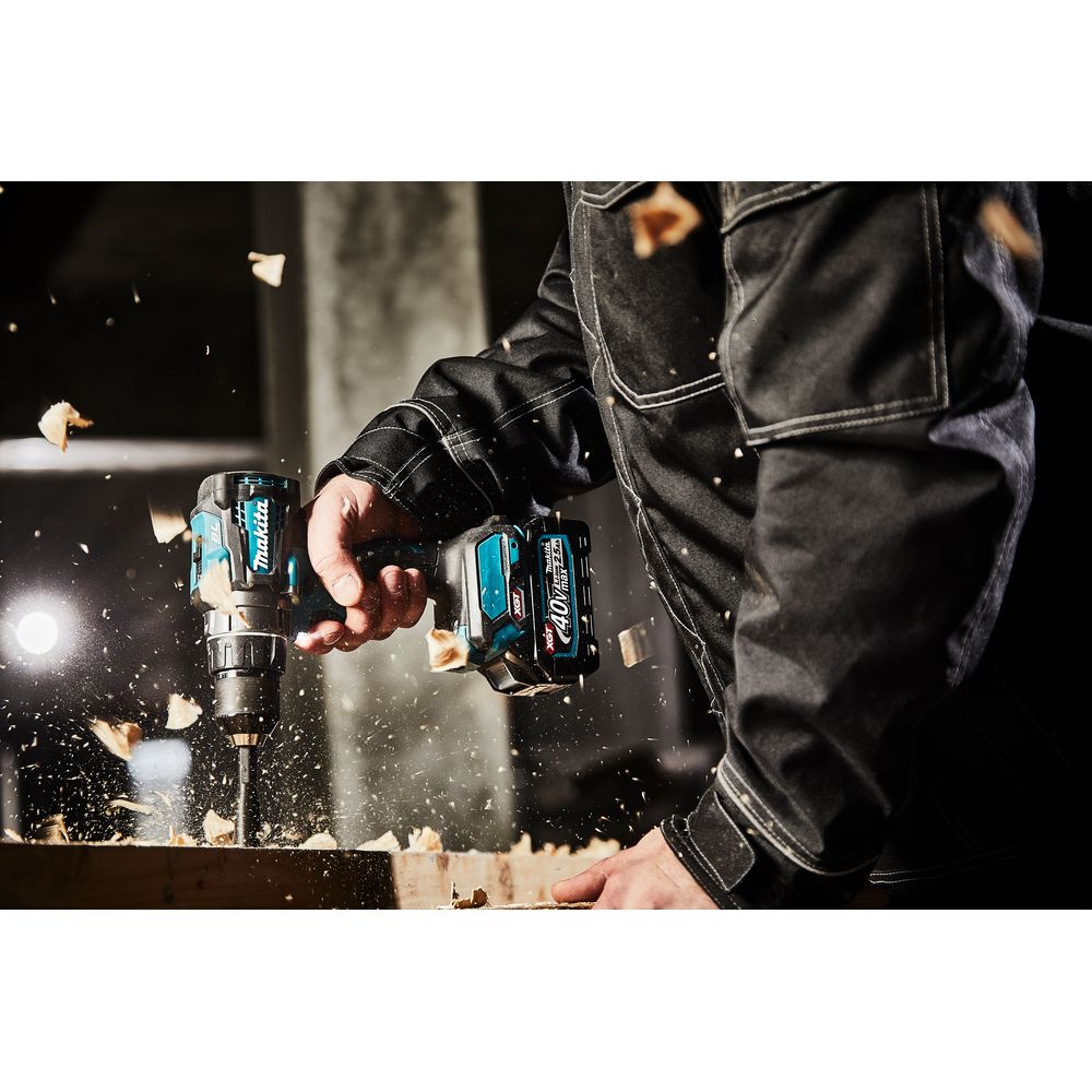 Инструмент с такой компоновкой уже знаком потребителю, но в 2022 году компания Макита существенно расширила возможности его применения. Дрель-шуруповерт Makita DF001GD201 длиной всего 18,1 см и весом менее 3 кг оснащена аккумулятором серии XGT напряжением 40 Вольт, что позволяет сверлить отверстия диаметром до 20 мм в стали и до 152 мм в дереве (кольцевым сверлом).