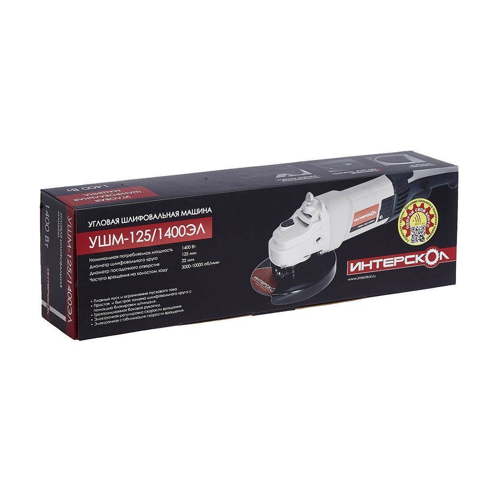 Угловая шлифовальная машина Интерскол УШМ-125/1400ЭЛ (302.1.0.00)
