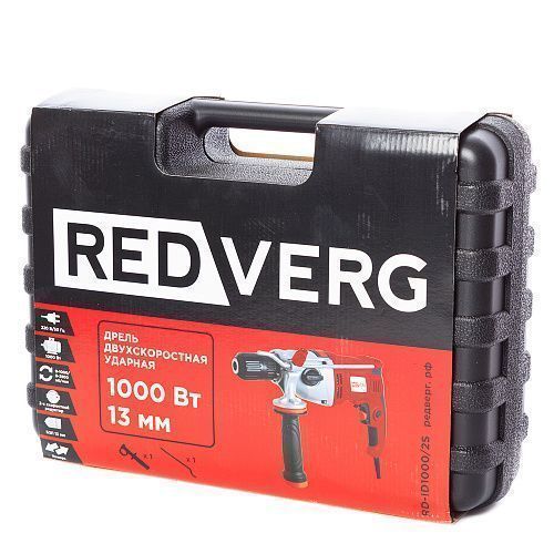 Дрель RedVerg RD-ID1000/2S ударная с 2-х скоростным редуктором предназначена для выполнения сверлильных работ по различным материалам и разными свёрлами.