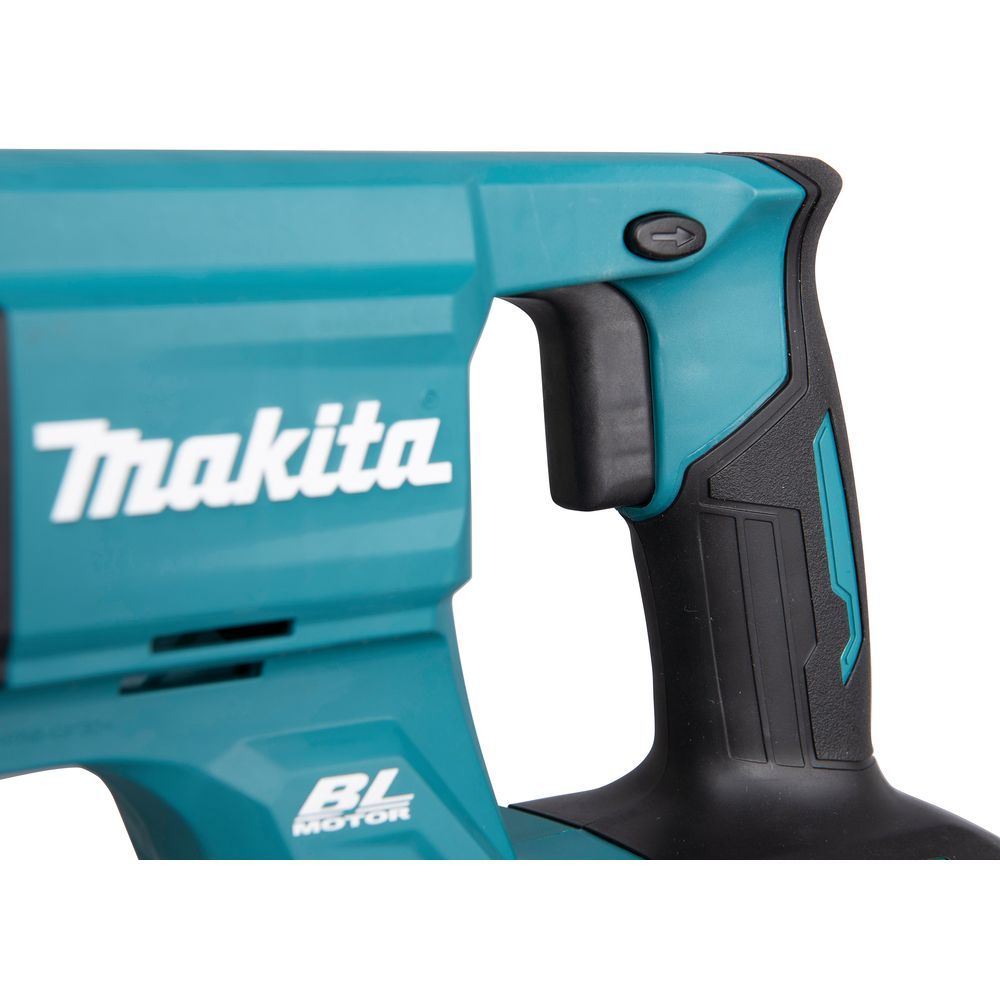 Такая способность связана с повышенным до 40 Вольт напряжением питания от аккумулятора BL40 серии XGT. Емкость этих батарей – от 2 до 5 А-час. Энергетические возможности – не единственное достоинство агрегата. Пользователь перфоратора Makita HR007GZ получает и другие весомые преимущества: