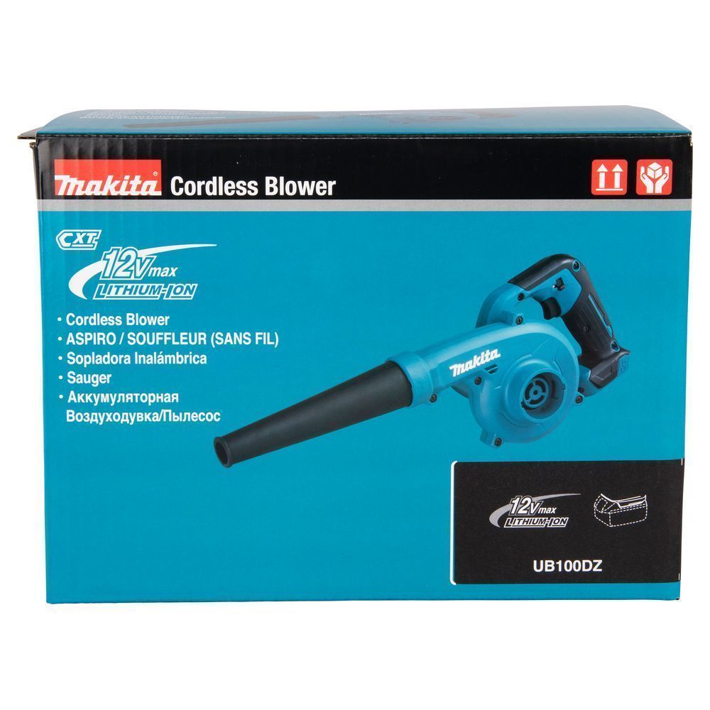 Проблема удаления пыли из компьютера или в любом другом месте в зависимости от условий может решаться двумя способами – с помощью пылесоса или воздуходувки. Агрегат Makita UB100DZ, предложенный потребителям в 2023 году, рассчитан на работу в любом качестве. Этот компактный инструмент весом не более 1100 г относится к серии CXT, то есть, рассчитан на подключение батарей серии BL10 любой емкости. Максимальная скорость потока у него – 75 м/сек., что вполне достаточно для эффективной уборки в быту.