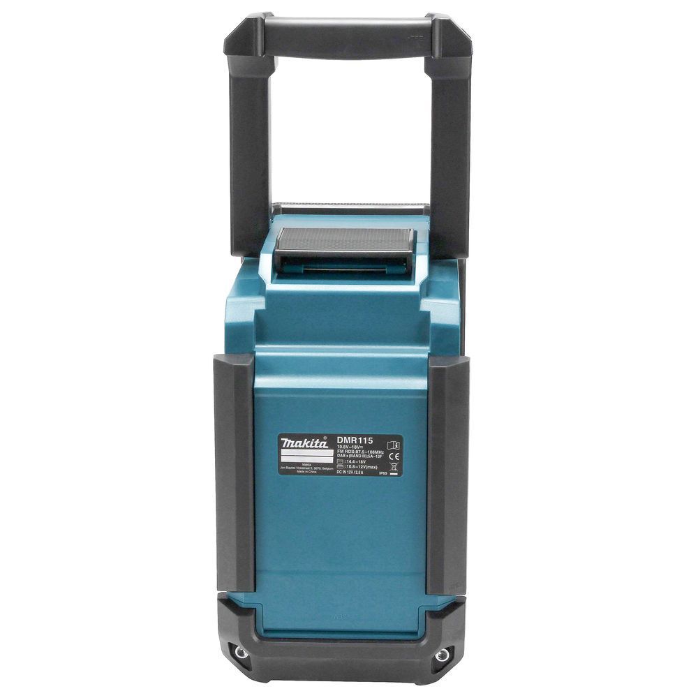 Агрегат предназначен для приема радиостанций в диапазоне FM (87,5... 108 МГц) и цифрового радио по стандарту DAB и DAB+. От аналогов его отличает особое исполнение с защитой по стандарту IP65, то есть, от пыли и брызг. Этим достоинства гаджета Makita DMR115 не исчерпываются и его обладатель получает целый набор интересных преимуществ: