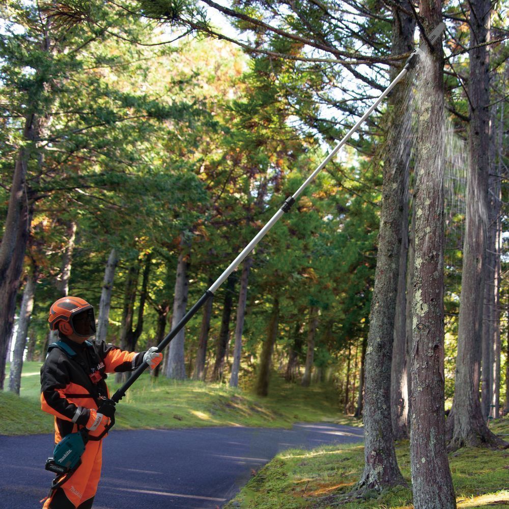 Инструмент для обрезки деревьев с земли на большой высоте на базе цепных пил традиционно ассоциируется с бензоприводом. В 2024 году компания Макита вывела на рынок аккумуляторный агрегат, сопоставимый по возможностям с бензиновым высоторезом, оснащенным двигателем 35 куб.см. Цепная пила со штангой  Makita UA004GZ рассчитана на обработку деревьев на высоте от 2,5 до 3,8 метров.
