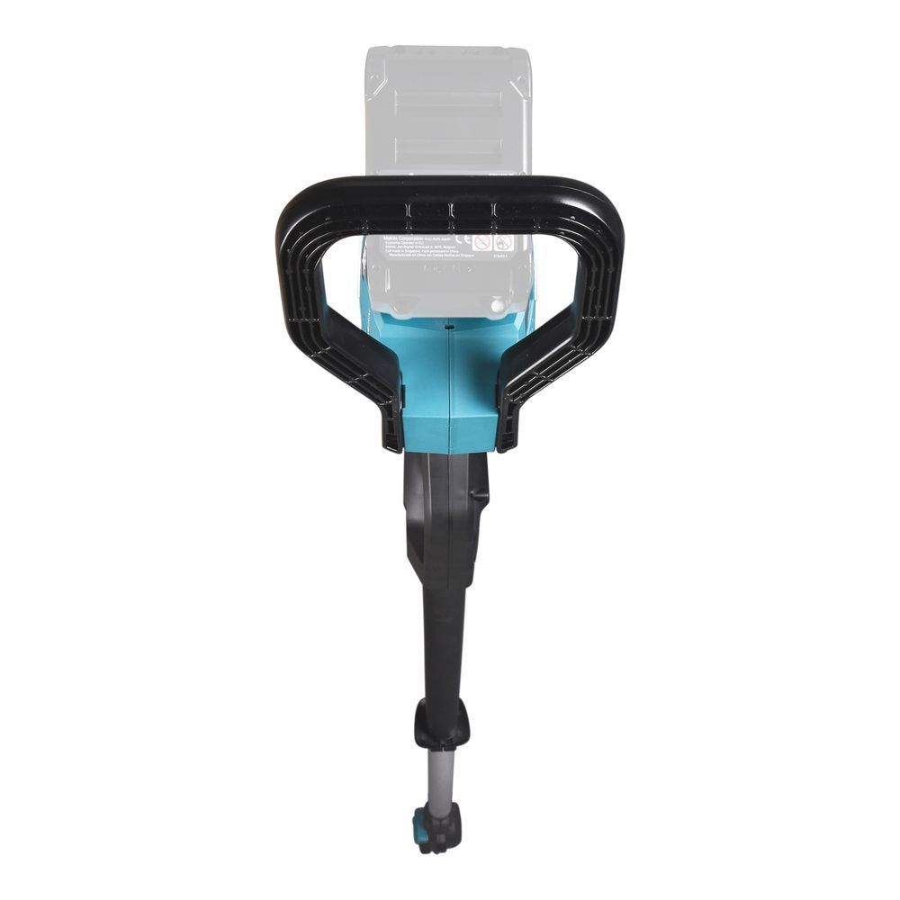 Высоторез Makita UA004GZ рассчитан на подключение блока PDC01 или PDC1200, который крепится к плечевому или поясному ремню с помощью крючка. Вес агрегата без источника питания не превышает 8 кг, а максимальная длина без шины и аккумулятора составляет 3,75 м.