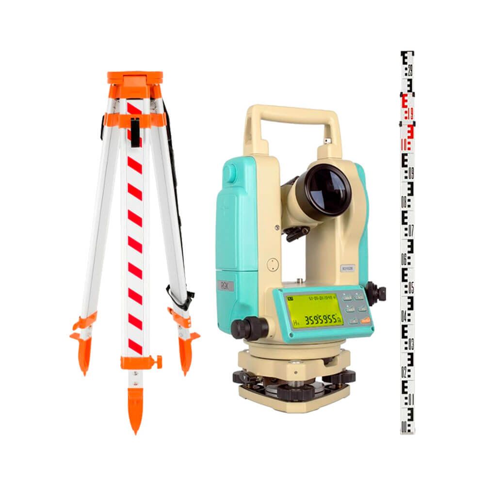 Стандартная комплектация: Электронный теодолит T-20, пластиковый кейс, аккумулятор, зарядное устройство, бленда, юстировочный набор, нитяной отвес.