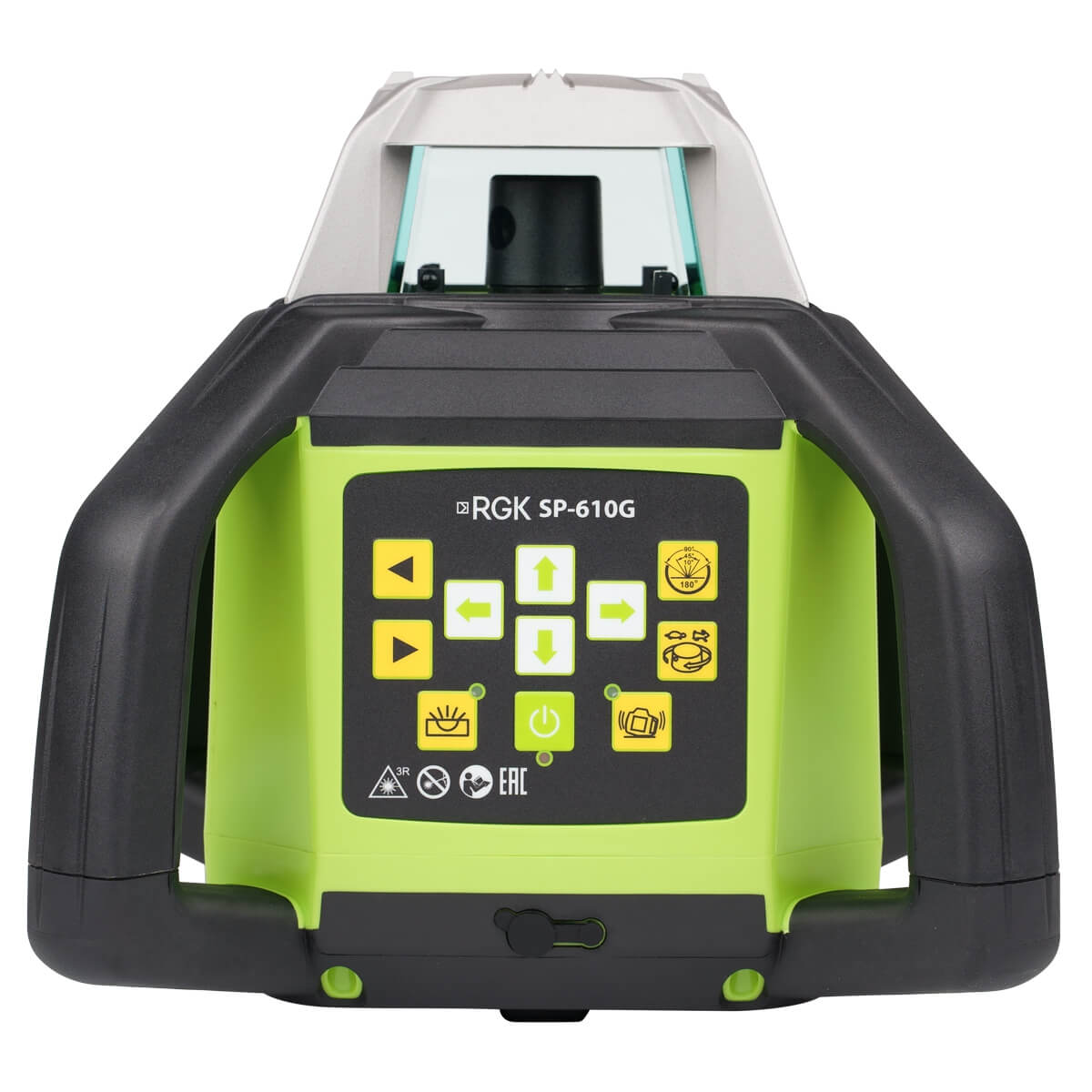 Пульт дублирует большинство функций клавиатуры и работает на расстоянии до 20 м от прибора. Дистанционное управление особенно удобно на многоуровневых объектах с лесами, лестницами и другими препятствиями между специалистом и RGK SP-610G.