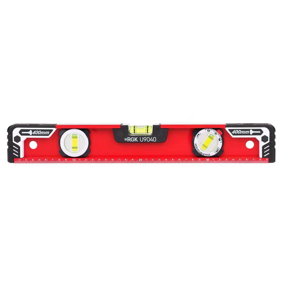 Пузырьковый строительный уровень RGK U9040 обеспечивает точность 1 мм/м. Длина 40 см позволяет использовать инструмент для проведения масштабных строительных работ по выравниванию полов, штукатурке стен и др.