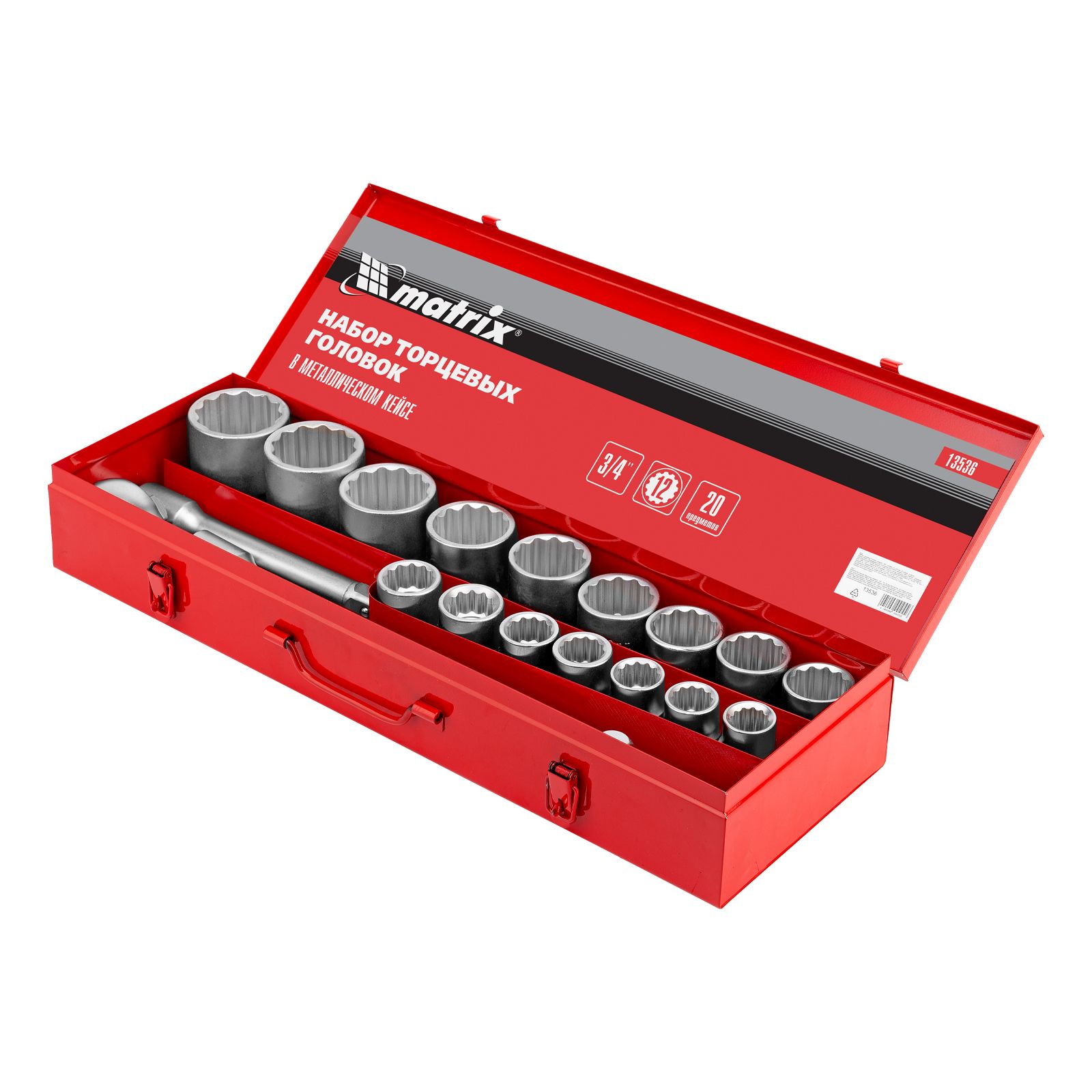 Набор торцевых головок 3/4", головки 19 х 50 мм, 20 предметов, в метал. боксе// Matrix