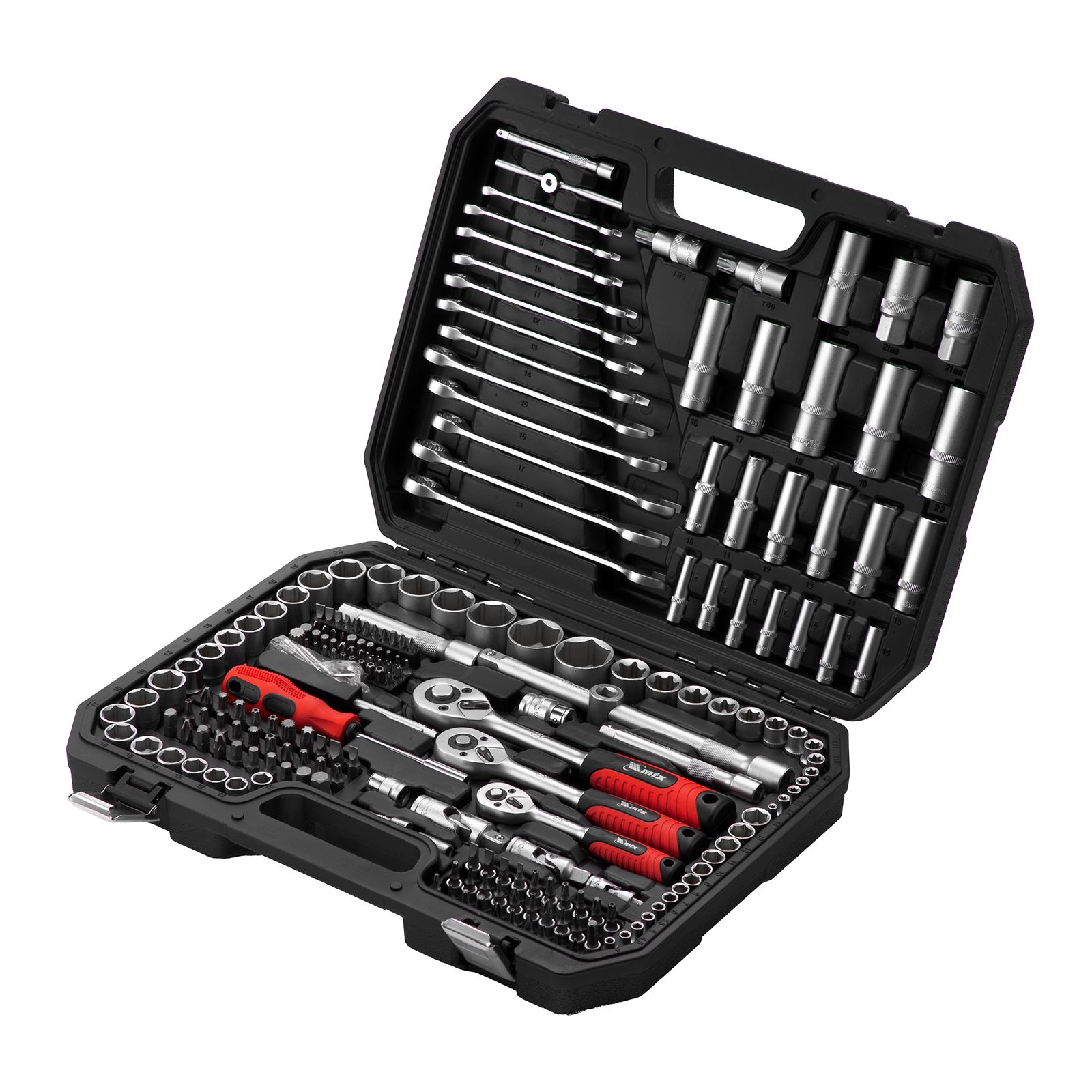 Набор инструментов, 1/2", 3/8", 1/4", пластиковый кейс 215 предм.// MTX