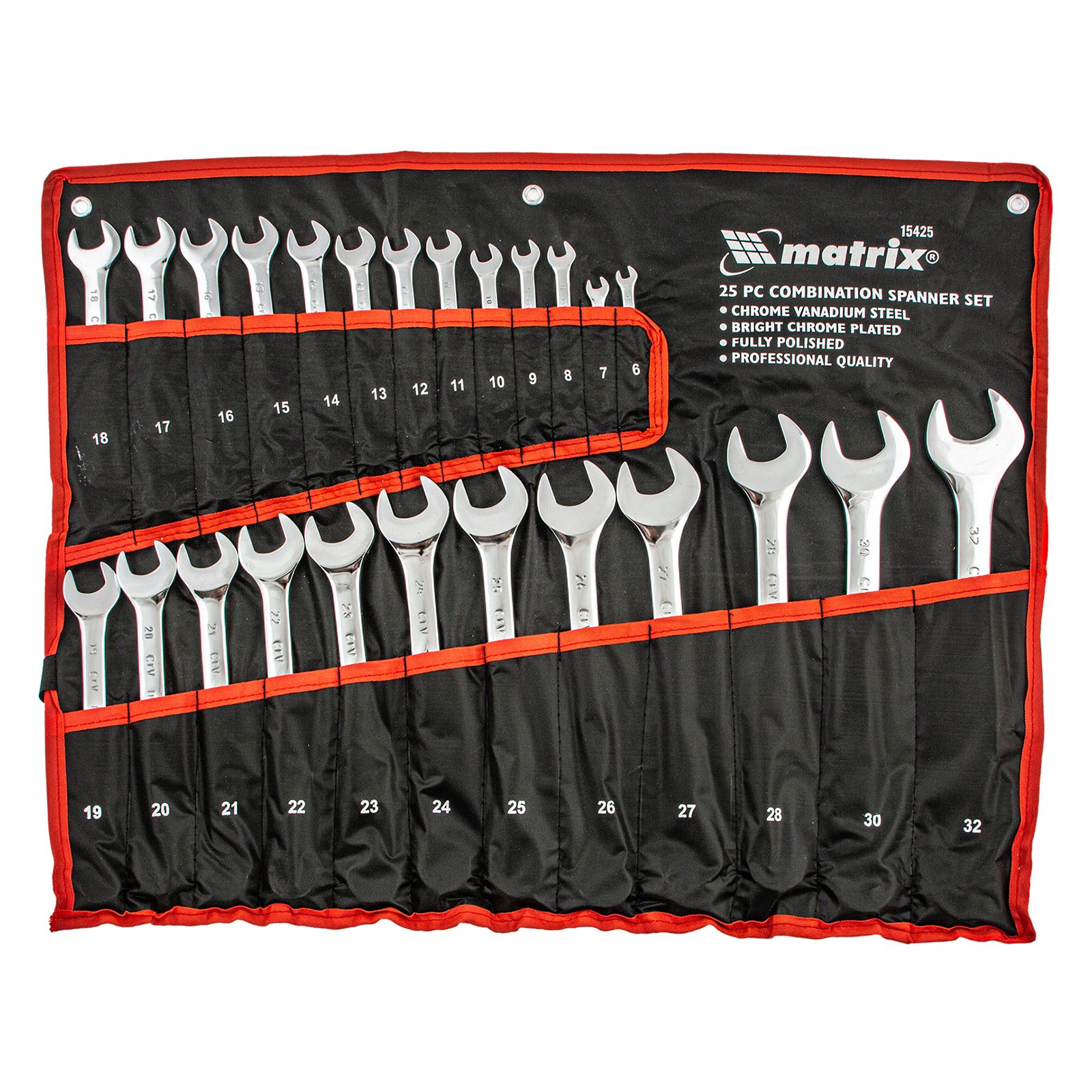 Набор ключей комбинированных, 6 - 32 мм, 25шт., CrV, полированный хром// Matrix