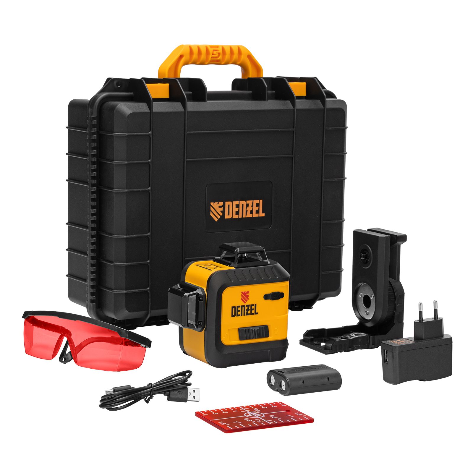 Лазерный уровень мультипризменный LX 360-2 Red, 30 м, 635 нм, акк. Li 2800 мАч, резьба 5/8"// Denzel
