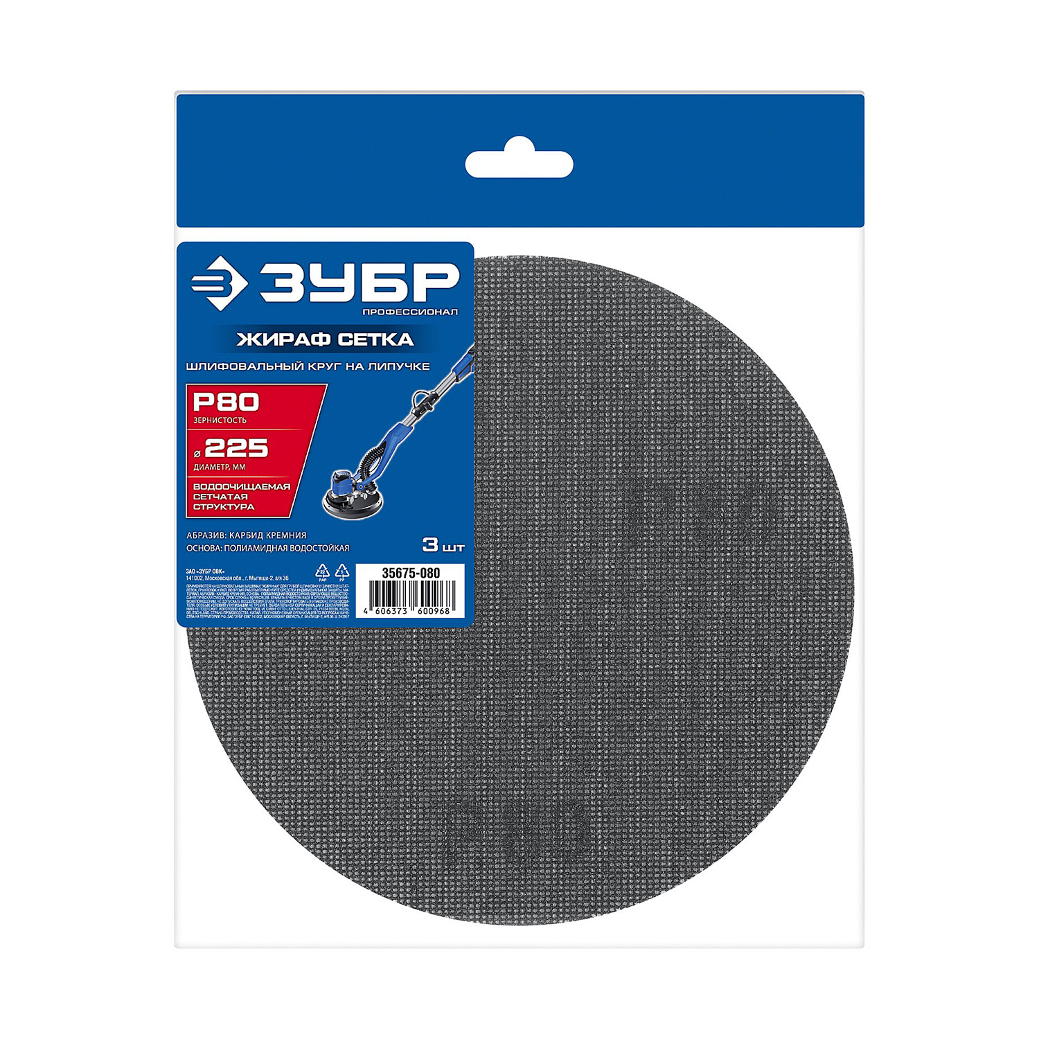 Диск сетчатый шлифовальный на липучке Зубр Профессионал, P80, 3шт (35675-080)