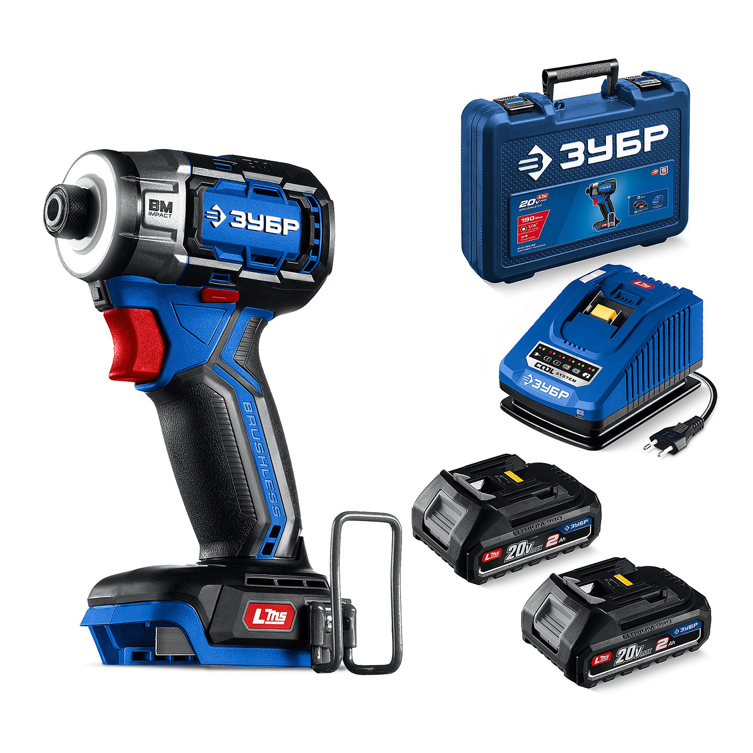 Высокотехнологичная модель в новой линейке аккумуляторного инструмента ЗУБР системы LMS Профессиональное изделие с передовым BRUSHLESS двигателем обеспечивает крутящий момент до 190 Нм и быструю скорость заворачивания. Гибкая регулировка крутящего момента позволяет использовать изделие для закручивания разного крепежа, а также реализовывать дополнительные режимы работы Преимущества Незаменимый инструмент для заворачивания крупных саморезов Экономия до 50% стоимости инструмента при наличии аккумуляторов платформы Бесщеточный BM-Motor двигатель обладает рядом преимуществ по сравнению с щеточным двигателем: - высокий крутящий момент, - высокий КПД благодаря максимально эффективному преобразованию электромагнитной энергии в механическую (ввиду отсутствия перекоммутаций), - повышенная надежность ввиду отсутствия искрения, трения и трущихся деталей, - низкое энергопотребление (до 4 раз дольше работа на одном заряде батареи), - высокая степень защиты двигателя благодаря интеллектуальному управлению, - гибкая регулировка крутящего момента и поддержка его на максимальном уровне при любых оборотах, - отсутствие перекоммутаций в коллекторе и, соответственно, отсутствие нагрева и потерь из-за переходных сопротивлений Значительный крутящий момент для заворачивания/отворачивания различного крепежа Режим тагненциального удара позволяет заворачивать крепеж большого диаметра без воздействия реактивного момента на кисть оператора 4 режима крутящего момента (за счет регулировки частоты вращения) для работы с различным крепежом и материалом 4 специальных режима работы: - сверление в дереве, - заворачивание кровельных саморезов в тонкий металл, - заворачивание саморезов в толстый металл, - автоматическое откручивание Возможность сохранения избранного режима работы и быстрого его вызова одним нажатием Яркий головной свет с тремя режимами (выключено, включение с инструментом, фонарь) и тремя степенями яркости не перекрывается патроном Панель переключения режимов работы и включения/выключения подсветки Металлический корпус редуктора обеспечивает прочность при передаче большого крутящего момента Патрон с внутренним шестригранником HEX 1/4'' позволяет устанавливать инструмент без оттягивания втулки и извлекать одной рукой Скоба крепления на поясе устанавливается с любой стороны инструмента Мягкие накладки на рукоятке повышают удобство хвата