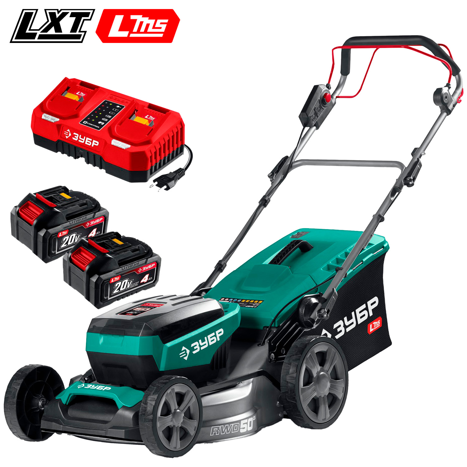 LMS/LXT, 2x20В, 2x4Ач, BL, 50 см, 25/75мм, самоходная, мульчирование, 60л, коробка