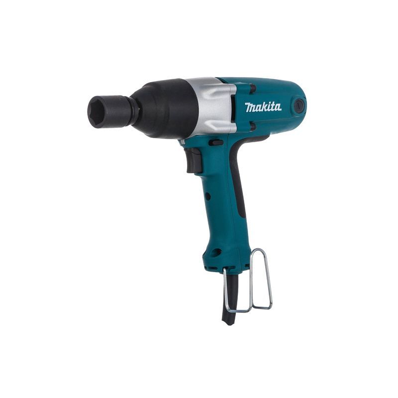 Корпус гайковерта Makita TW0200 выполнен из алюминиевого сплава, что одновременно обеспечивает его лёгкость и прекрасные теплоотводящие качества. Патрон у этого инструмента – специализированный, имеет квадратный хвостовик 12,7 мм. При работе необходимо учитывать материал крепежа (это отражено в вышеупомянутых графиках) и соблюдать соответствие его размера патрону. Присоединение к электросети следует производить, убедившись, что инструмент выключен.