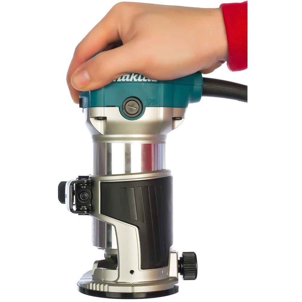 Для того, чтобы обеспечить безопасную и удобную замену фрез, верхняя область триммера является плоской.