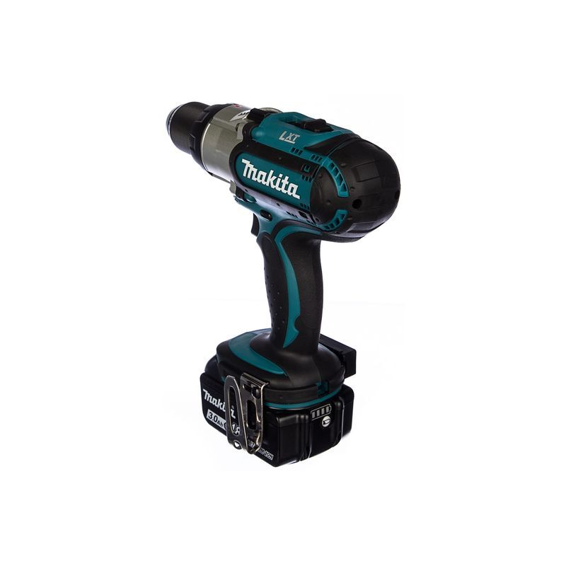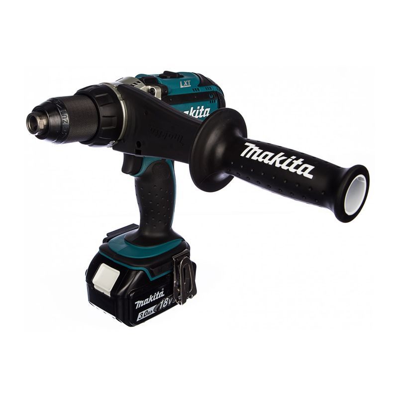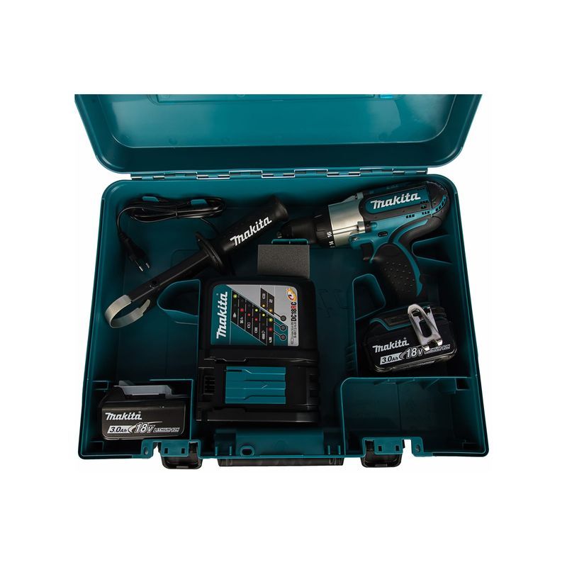 Длина у инструмента Makita DDF451RFE меньше 24 см, а вес составляет 2,1 кг. Ещё одно преимущество этой модели – возможность установки аккумулятора повышенной до 4 А-час ёмкости. Впрочем, штатный аккумуляторный блок на 3 А-час тоже не заставит часто прерывать работу. Во-первых, в комплекте поставки этих блоков два. Во-вторых, зарядное устройство работает по интеллектуальной технологии быстрой зарядки MAKSTAR. Это устройство вспомнит (без кавычек!) подключаемый аккумулятор и выполнит операцию с учётом его особенностей.