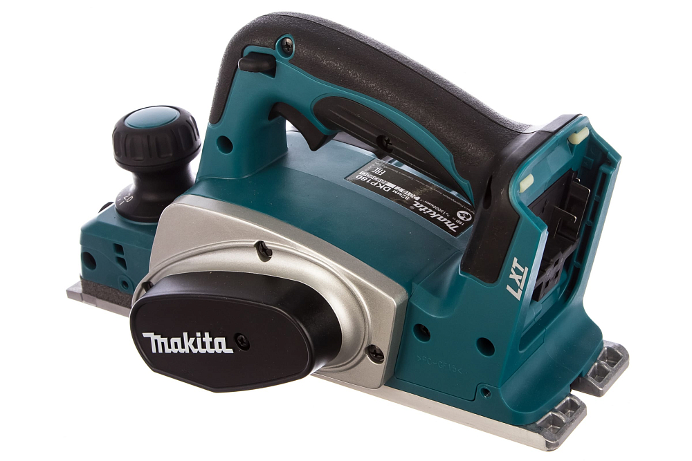 Конструкция рубанка Makita DKP180Z полностью соответствует традициям, свойственным продукции производства Макита. Агрегат весит всего 3,4 кг и при длине 33,3 см прекрасно сбалансирован и легко удерживается за счёт эластомерного покрытия рукоятки и её эргономичной формы. Мощности привода рубанка вполне хватает для строгания твёрдой древесины, ведь питание осуществляется от литиево-ионного аккумулятора с повышенным напряжением 18 В.