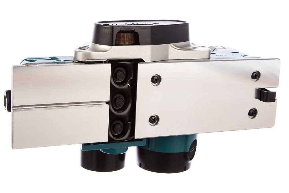 Разумеется, важнейшее значение для качественной обработки имеют используемые в строгальном агрегате ножи. В рубанок Makita DKP180Z можно устанавливать режущий инструмент разных типов, в том числе и мини-лезвия от рубанков с сетевым питанием. Ширина лезвия составляет 82 мм, и конструкция инструмента позволяет их легко заменять. Поставщики рубанка предлагают для него не только ножи различного типа (одно- и двухсторонние, затачиваемые и незатачиваемые), но и целый спектр фирменных приспособлений для их заточки, фиксации и точной установки.