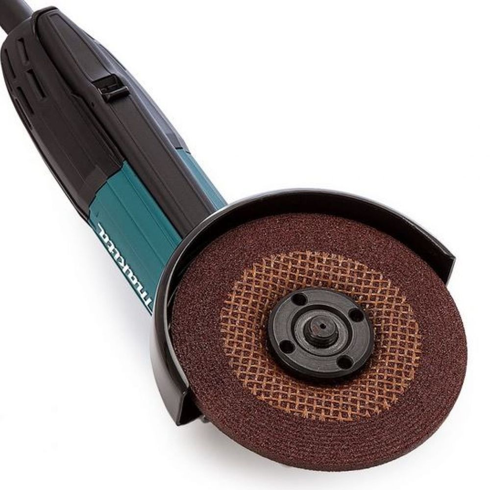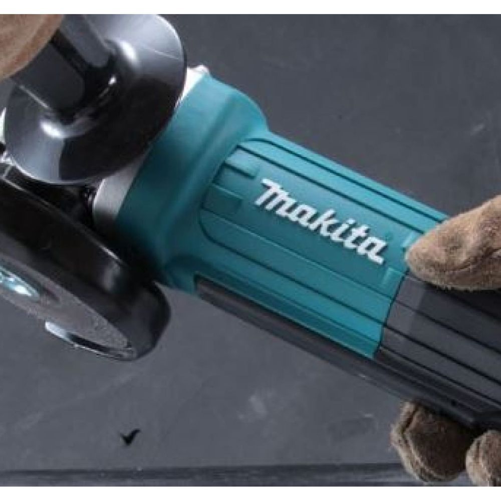Сама рукоятка у инструмента Makita GA4534 покрыта антивибрационным материалом, а её размер в сочетании с размерами, формой и покрытием задней части основного корпуса идеально подобраны для удобного захвата. Макитовская эргономика здесь явно на высоте. Но это ещё не всё. Клавишный выключатель на корпусе этой шлифмашины расположен таким образом, что им можно управлять во время работы одной рукой. Разумеется, имеется и кнопка блокировки от случайного пуска.