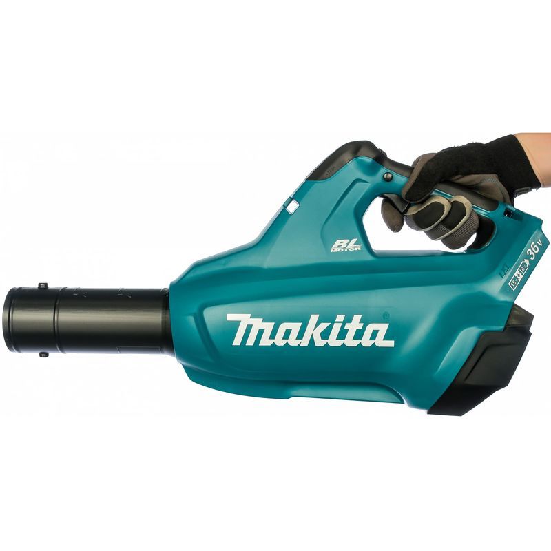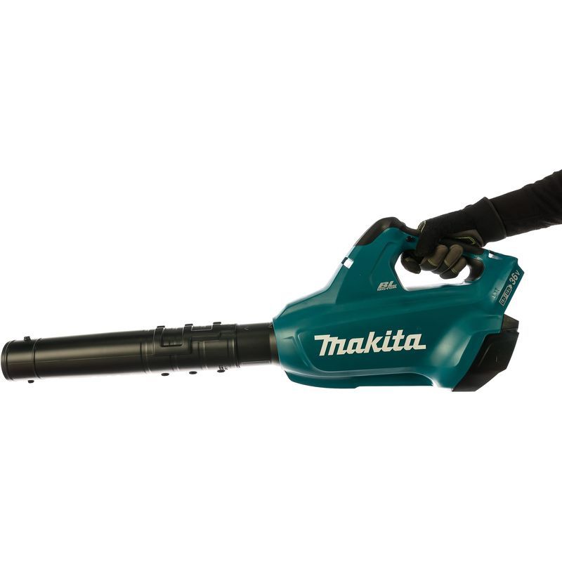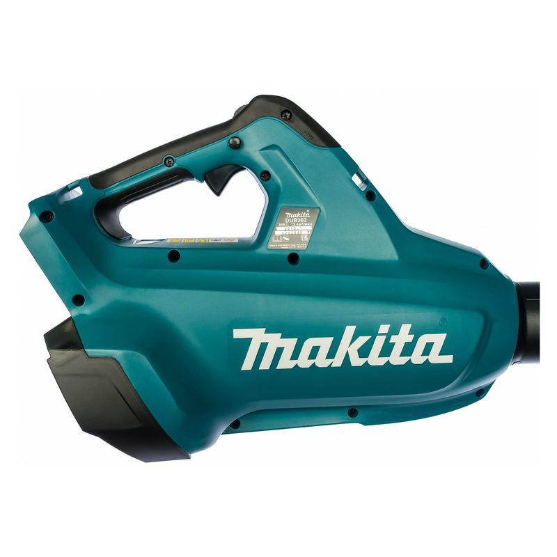 Компоновка воздуходувки Makita DUB362Z выполнена с учетом всех требований эргономики. Удобная рукоятка с выключателем обеспечивает надёжное удержание агрегата, для этого же предназначен и наплечный ремень, который входит в комплект поставки. Можно ещё отметить, что аккумуляторами и зарядным устройством эта модификация не комплектуется, поэтому следует помнить, что для воздуходувки понадобится приобретение блоков серии BL18XX. Рекомендуемое зарядное устройство - DC36RA с ускоренным до 22 минут временем зарядки.