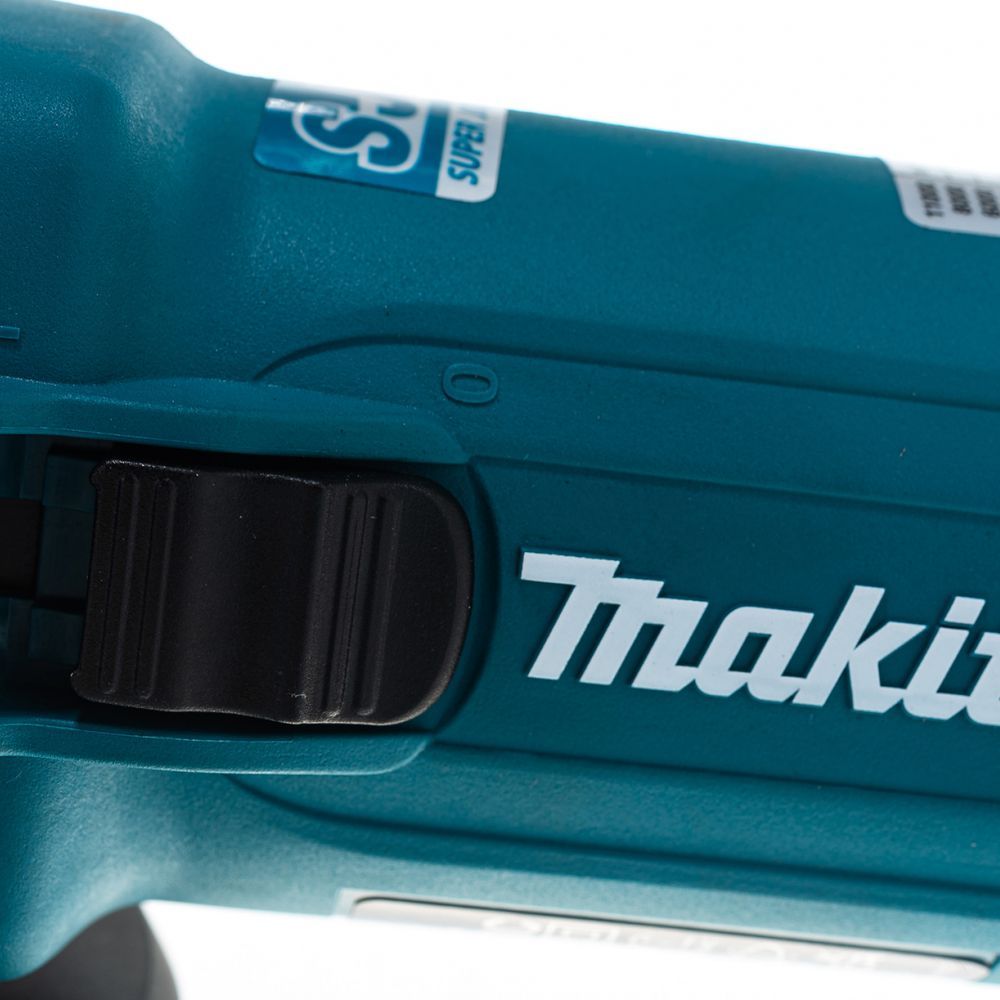 Управление УШМ Makita GA5040C осуществляется двумя элементами – выключателем и диском регулировки скорости. Выключатель в агрегате выполнен в виде движка, имеющего дополнительное положение в состоянии «ВКЛ», что позволяет зафиксировать его при длительной работе. Регулятор скорости имеет 5 рисок, и им можно выставить необходимое значение в диапазоне от 2800 до 11000 об/мин. Следует учесть, что производитель не рекомендует использовать агрегат на пониженной скорости в течение длительного времени во избежание перегрузки.