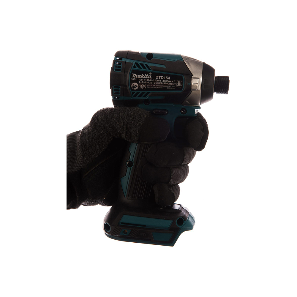Основная особенность шуруповерта Makita DTD154Z – четырехступенчатая регулировка силы удара. Производится она с помощью кнопки, расположенной в нижней части рукоятки, а состояние отображается на ЖК-индикаторе. В ряду настроек есть даже специальный режим для фиксации саморезов, а диапазон максимальной частоты работы привода изменяется от 1100 до 3600 оборотов и от 1100 до 3800 ударов в минуту.