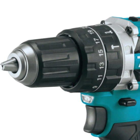 При переводе агрегата Makita DHP484Z в режим шуруповерта пользователь может установить крутящий момент в 16 положениях в диапазоне от 30 до 54 Нм. Инструмент имеет все необходимые для работы в этом режиме атрибуты – переключатель реверса и тормоз. Есть в инструменте и подсветка зоны работы, активируемая при нажатии на основной выключатель, а также удобный крючок для крепления на ремне.