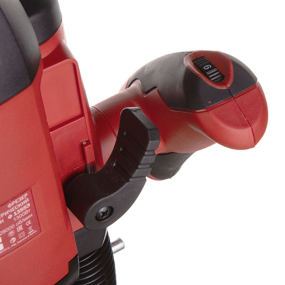 <li>Блокировка шпинделя делает замену оснастки фрезера Elitech Ф 1355Э быстрой и безопасной</li>