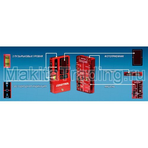 С помощью этого изделия можно существенно повысить эффективность работы с нивелиром при плохой видимости лазерного луча. Электронный отражатель Condtrol – это активный прибор с питанием от пары мизинчиковых батереек ААА, который позволяет точно определить положение проецируемой линии по шкале или по индикатору.