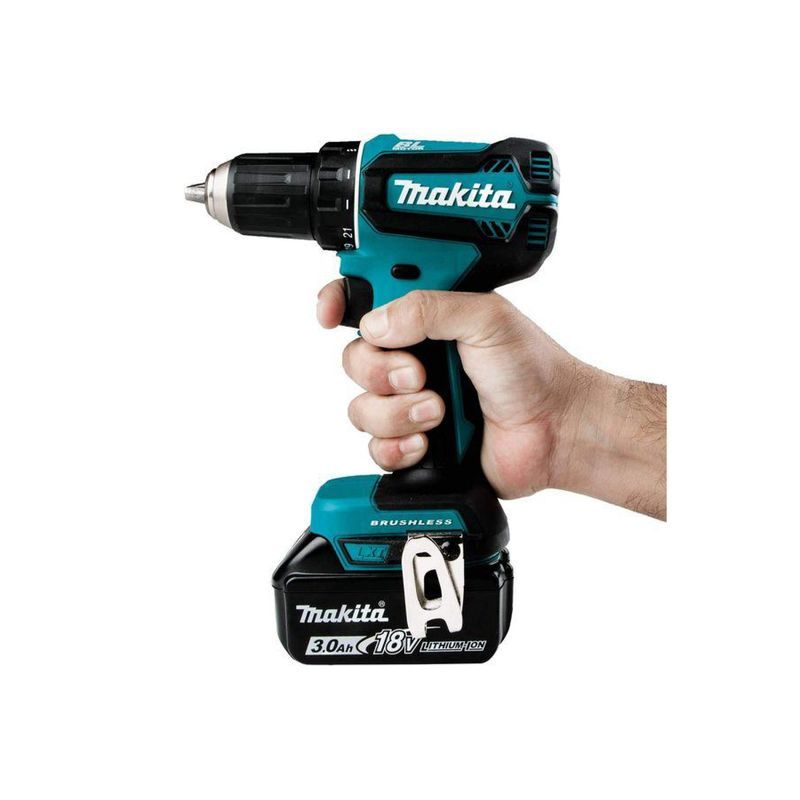 Аккумуляторы надежно защищены как собственной электроникой, так и автоматикой дрели Makita DDF485RFE. Им не грозит перегрузка по току, перегрев или недопустимый разряд – привод при возникновении опасной для батареи ситуации отключится автоматически. Предусмотрена и временная защита – если держать курок выключателя нажатым в течение 6 минут. В некоторых моделях аккумуляторов возможно посмотреть уровень разряда по индикатору.